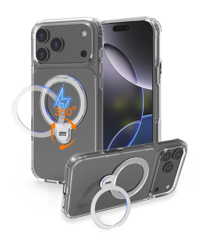 2025 במגמת צלצול במקרה טלפון מגנטי עם 360 ° טבעת לעמוד על iphone 17 pro מגן פלסטיק שקוף מקסימום מגן